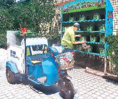 不一会儿,负责收运垃圾的工作人员开着三轮车来了,通过机器扫描桶上安装的智能积分卡,王阿姨投放厨余垃圾的次数被换算为积分,实时上传到垃圾排放登记系统里。积分到一定数量后,王阿姨可领取相应奖励。厨余垃圾则被送到处理站,由专门环卫车辆运走。负责该项目的某环保公司项目经理邢智磊说:“现在雅宝公寓近一半居民会将厨余垃圾放到绿桶里,大家都觉得这个办法好。我们准备积极推广。”