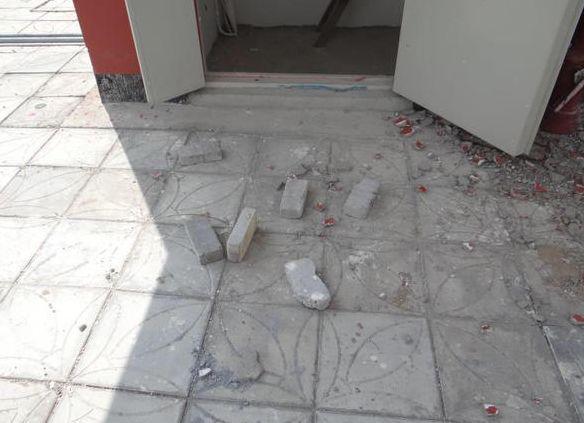 砖块砸在小学楼顶边缘