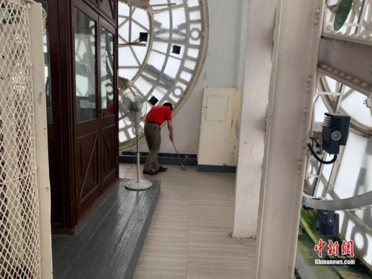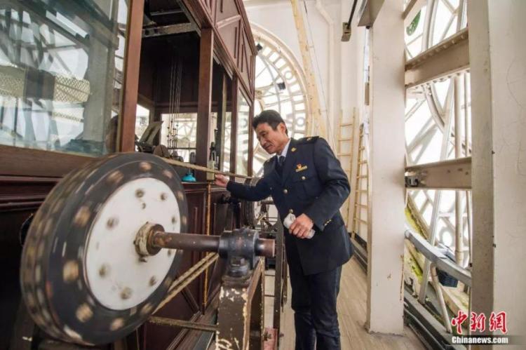 每周开钟上发条3次,每次要4人操作1小时左右才能完成。“不过后来在技术革新后,大钟就装上了电动马达,上发条的工作只需要15分钟就可以完成。”不过前一段时间,大钟有几个零件送回了英国原厂维修,现在我们听到的都是电子报时。