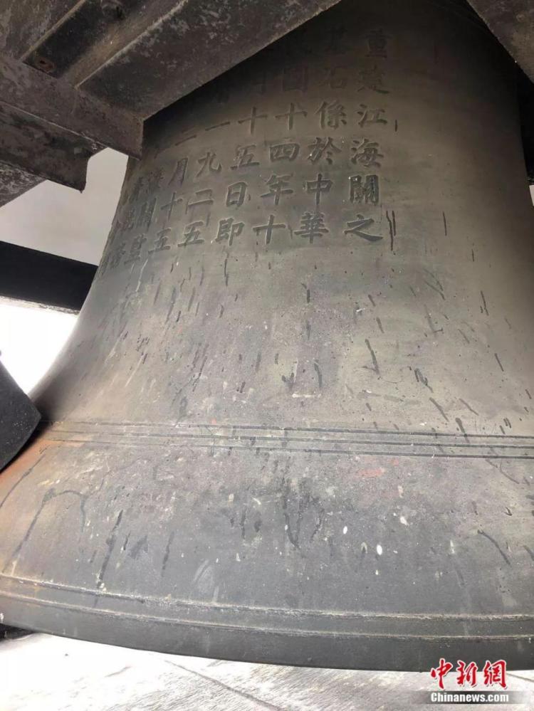 大钟的上面还刻着铭文“重建江海关之基石……”,魏师傅介绍,这是海关大楼的铭文,一般铭文都会在楼前面,但海关大楼的铭文刻在了这口大钟上。