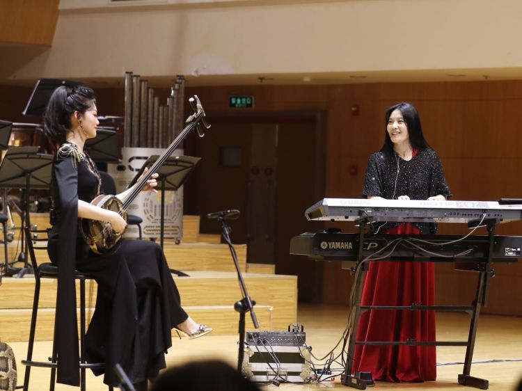 紧随其后的,将三弦与古琴大胆结合赋予新色彩的根据《酒狂》一曲改编的《曲水流觞》再一次让观众看到了不一样的商钟元。据了解,这首古曲首次为此次音乐会进行大胆尝试,为了体现商钟元对于这首作品的喜爱,她特邀古琴演奏家陈雷激共同演绎这首作品。将三弦与古琴进行音乐对话,音乐色彩的碰撞,大俗与大雅的完美结合,赋予这首古曲全新的生命。三弦独奏曲《舞幻》,表达了作者观看古代舞蹈画卷后,梦幻般的想象,用音乐表现出时隐时现的多彩舞姿。在本次音乐会中,最值得期待的是,由著名音乐人捞仔作曲的三弦与电子音乐《京觅》以世界首演的形式亮相于本次音乐会,这首《京觅》既有现代音乐元素,也具有中国音乐的精髓。本曲主要是表现寻觅老北京独有的韵味儿,黄城根儿特有的气氛,借鉴了北京多首民谣,用中国古老传统乐器三弦展现的淋漓尽致。音乐人捞仔始终致力于流行音乐的探索与挖掘,努力使流行与传统音乐能够完美融合,此曲真正让人们充分领略到音乐带给我们的独特魅力!有商钟元、汪轼晔作曲的近现代三弦四重奏《舞动》也以全新的姿态亮相本次音乐会,商钟元坦言,她试图在整首作品中运用钢琴、竹笛、打击音效进行东方与西方乐器的融合,产生不一样的色彩,以此来尝试三弦表现流行与时尚的可能性。而作品《黄连苦胆难分》则是一首由三弦与乐队共同演绎的作品,这是一首根据现代京剧唱段改编的独奏曲。“三弦弹戏”曾是过去传统三弦演奏中一种极具特色的表演形式。用三弦演奏来模仿人声演唱,甚至能模仿出不同流派特点和锣鼓声。此曲就是在继承这一传统演奏技法的基础上改编而成的独奏曲。