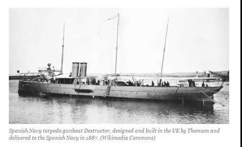西班牙海军用来打击鱼雷艇的“破坏者号”驱逐舰,由英国汤姆森公司设计制造,于1887年交付给西班牙海军使用。