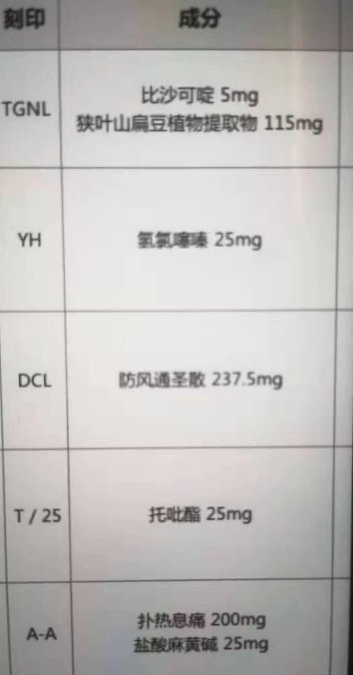除此之外,阿雯还有吃减肥药的习惯。医生通过查看这些产品中的成分表,发现其中含有比沙可定(促进排泄)、氢氯噻嗪(利尿剂)、托吡酯(抗癫痫)、扑热息痛(解热镇痛)、麻黄碱(解除气管痉挛)、防风通圣散(发汗、退热)等成分。