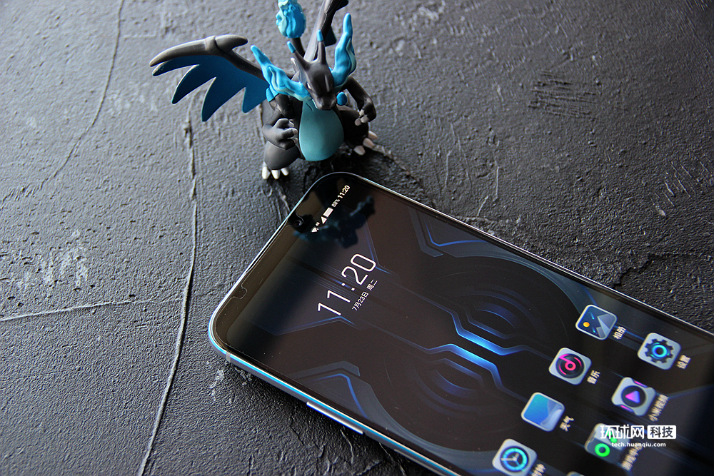 接下来,再来看看外观。黑鲨游戏手机2 Pro的外观与其普通版本的没什么差别。正面来看,黑鲨游戏手机2 Pro依旧采用了非异型屏,配备了一块6.39英寸的AMOLED显示屏,屏幕分辨率为1080×2340,像素密度为403 PPI。前置摄像头与光感应器/距离传感器被设置在了屏幕的上方。