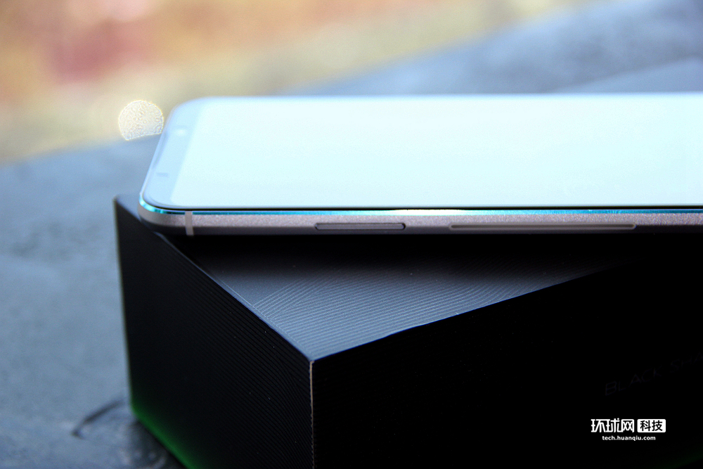 背面来看,黑鲨游戏手机2 Pro是金属玻璃材质的“跑车造型设计”。与黑色版本的黑绿色电镀效果不同,小山手上的这台冰魄灰配色的机器改成了蓝色电镀效果。在阳光照射下,有种冰冰凉的感觉。