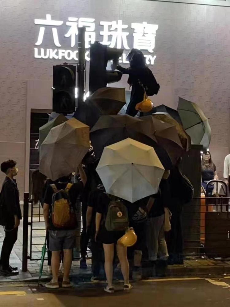 游行结束后,示威者甚至还非法聚集在尖沙咀警署外。环球时报—环球网记者看到,身着黑衣戴着头盔面罩的示威者向警署扔木棍、铁枝等杂物,另有网络视频显示,示威者用强力弹弓发射砖块。之后示威者又将警署外涂黑,并用激光照射,甚至还有人在警署外纵火。