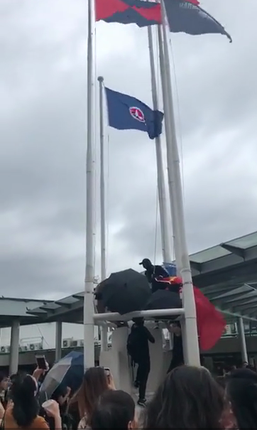 示威活动期间再次出现暴力行为,有部分激进示威者暴力衝击警署、破坏汽车、多处纵火等。此外,怀疑有示威者刻意破坏国旗,触犯《国旗及国徽条例》。政府对于激进示威者目无法纪,蓄意破坏社会安宁,甚至挑战国家主权,予以强烈谴责。警方会严正执法,而使用暴力的违法示威者亦应受法律制裁。