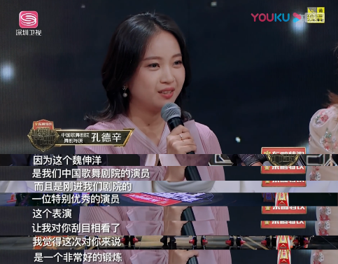 其实,来自北京舞蹈学院的魏伸洋还有一个新身份——中国歌剧舞剧院演员。凑巧的是,“单位领导”中国歌剧舞剧院导演孔德辛作为评审团成员来到了节目现场。看完表演后,孔导欣慰地给出了高评价:“我对你刮目相看了,我觉得这次对你来说是一个非常好的锻炼。”