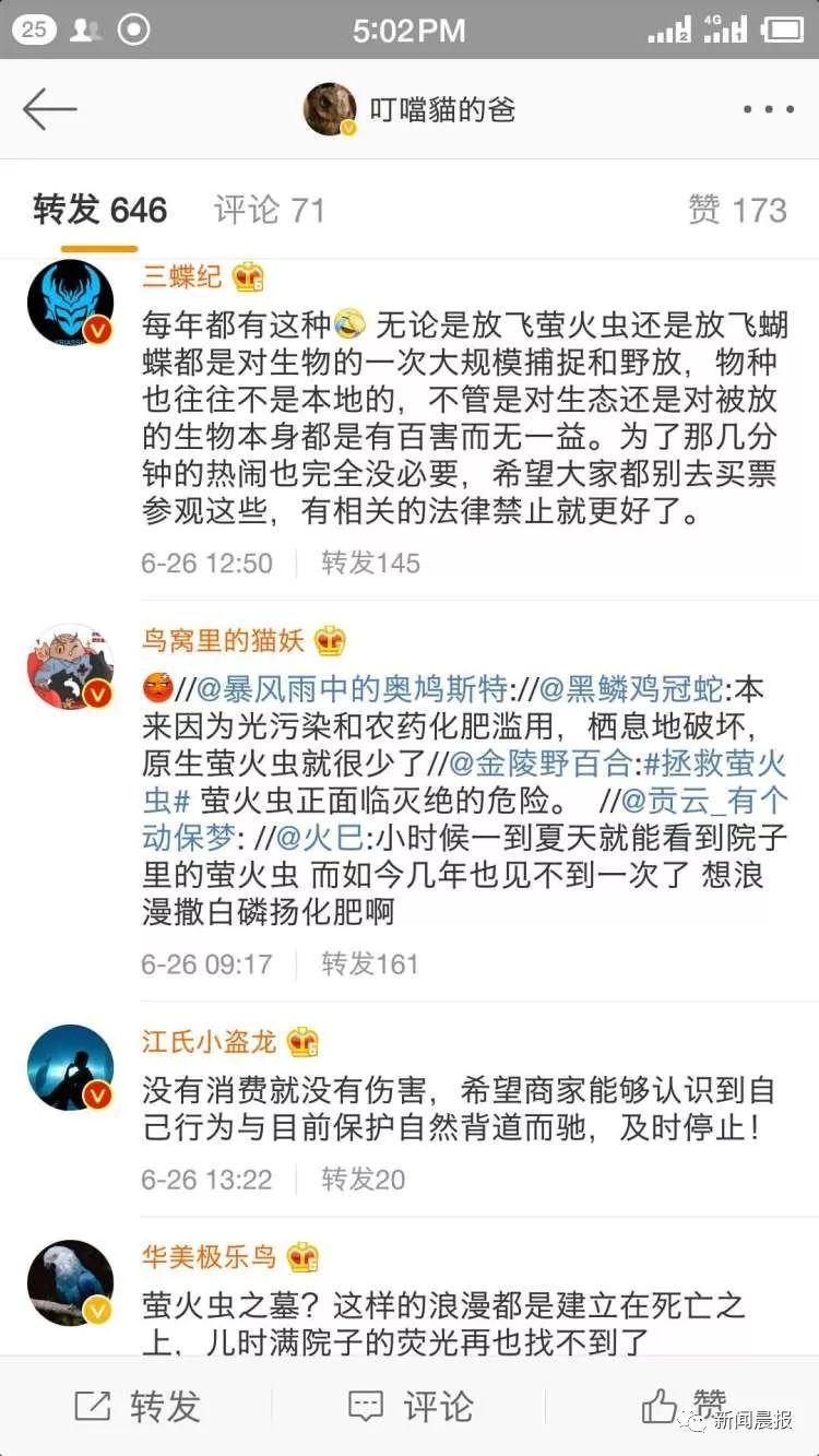 网友为何反对?原来,他们怀疑这些萤火虫的来源并非如商家所说来自养殖场,而是来自野生萤火虫的人工捕捉。