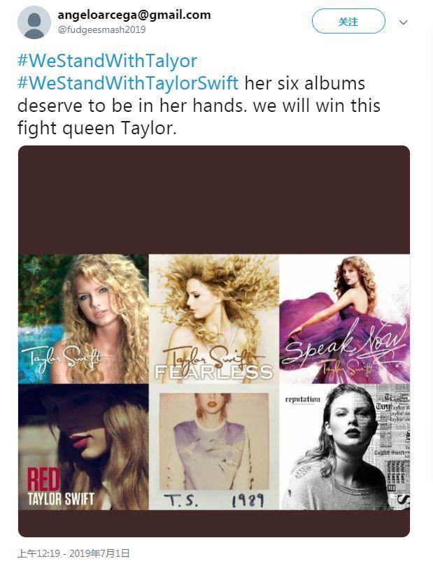 “我们站在霉霉这边。她的六张专辑的版权应该在她自己手中。我们会赢得这场斗争的。”