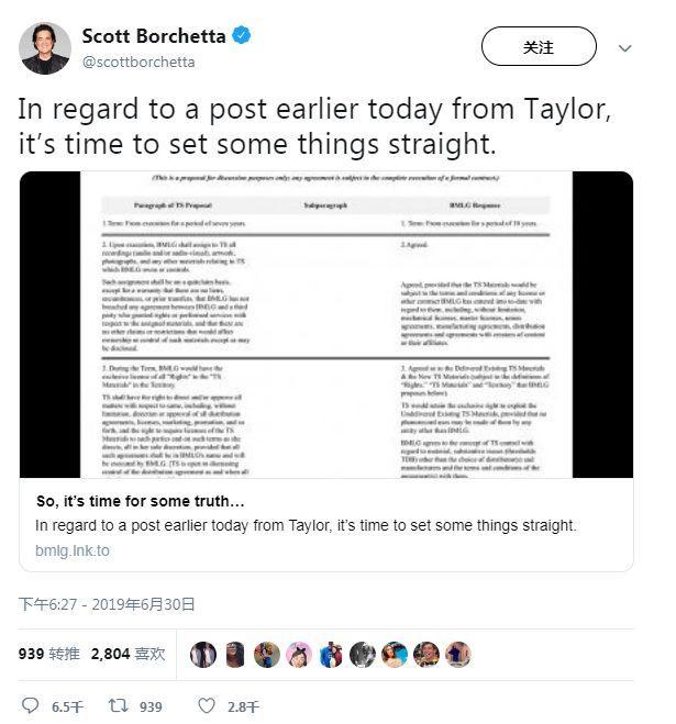 霉霉的前老板斯科特⋅波切塔 (Scott Borchetta)这两天也被很多网友“攻击”。