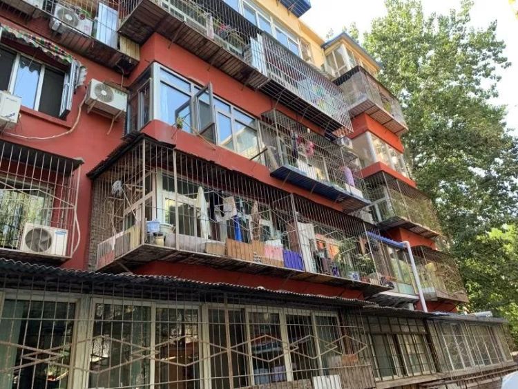 这些小区多建于上世纪八九十年代,相比较于周边的新建小区,防盗窗成为老旧小区低层楼房的标配,有些楼房从一楼到六楼都安装了防盗窗。既有网状的,也有栏杆式的,既有紧贴窗户的,也有外凸的,各式各样。