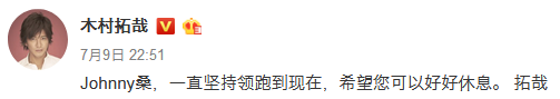 日本知名偶像男团SMAP成员木村拓哉,9日当晚在他的新浪微博上发文悼念。