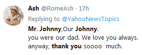 Johnny先生,我们的Johnny。您是我们的父亲。我们永远爱您。太感谢您了。