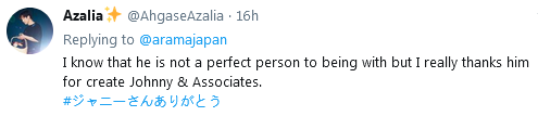 我知道他不是个完美的人,但我真的感谢他创立了杰尼斯事务所。