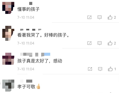 这对父子的故事在网上引起了关注,网友都表示心疼这个好孩子,被他的孝心感动了: