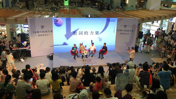 林秋离携手两位金蜗牛填词大赛常驻导师:创作出梁静茹《勇气》、王力宏《你不知道的事》、林俊杰《爱笑的眼睛》等流行金曲的知名华语填词人洪瑞业,有“Beyond乐队御用填词人”之称的著名粤语词人刘卓辉,在发布会上以访谈的形式,和现场500多位观众,分享了自己对当下华语乐坛以及歌词创作的看法。