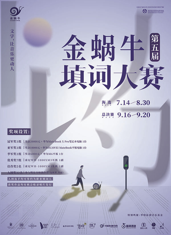 据悉,金蜗牛填词大赛,由“华唱原创音乐基金会”于2015年发起,连续成功举办四届,是目前国内唯一以“音乐填词”为核心的专业赛事;累计参赛选手超过5万人,已成为华语词坛颇具规模和影响力的原创品牌,被业界称为“中国最文艺的音乐赛事”。