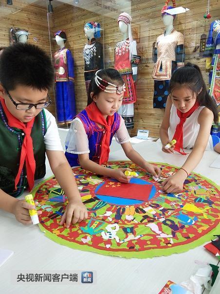 △当天,社区里的小朋友们正在制作红山蒙古族纸艺《五十六个民族是一家》。(国广记者蔡靖骉拍摄)