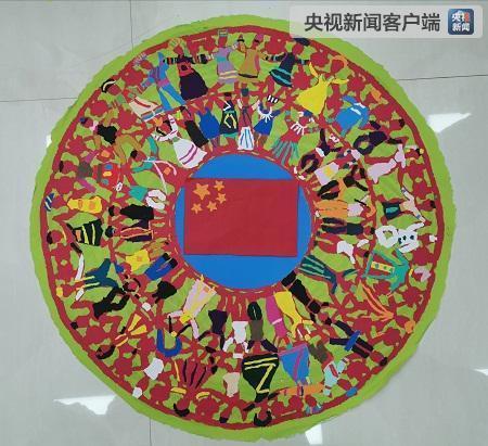 △小朋友的作品《五十六个民族是一家》。(央广记者刘会民拍摄)