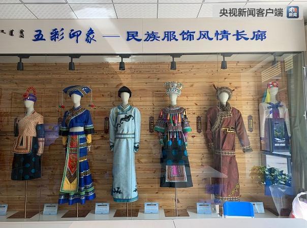 △临潢社区党群服务中心有一个民族服饰风情长廊,展示了社区12个少数民族的服饰。(央视记者沈忱拍摄)