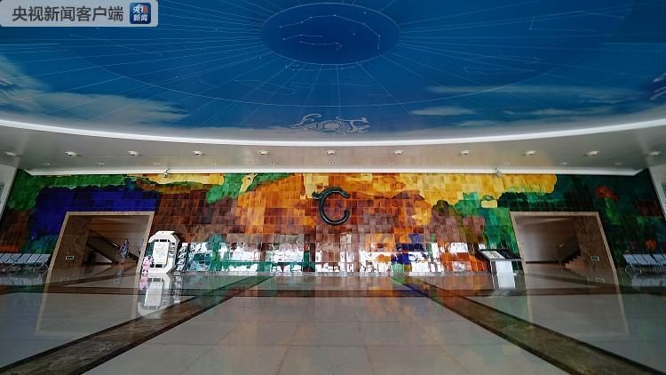 △在赤峰博物馆,随处可见玉龙的踪迹。序厅背景墙的设计灵感来源于辽三彩,烘托的正是这条C字形的玉龙。(央视记者彭汉明拍摄)