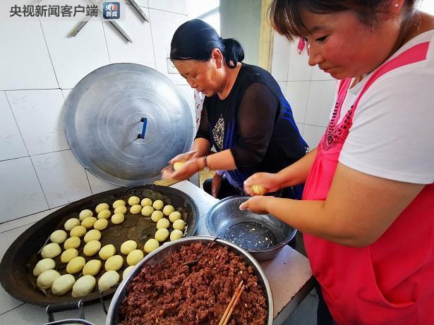 △张国利老伴和儿媳正在做粘豆包。(央视记者荆伟拍摄)