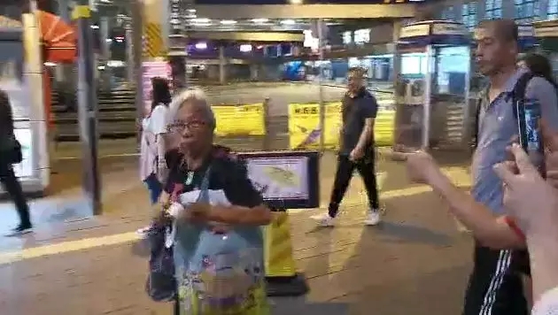 老太太不服气,喊“港独”口号,结果被周围人一顿骂。有说她是“狗”,让她“回英国”。