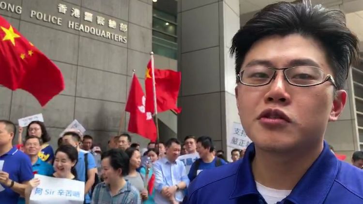 前来撑警察的全国港澳研究会会员季霆刚表示,8月10日是全民撑警日,他们希望支持警队反暴力。他说,“对于最近香港发生的一连串暴力事件我们觉得很忧心、很心疼。我们希望可以尽快恢复平静,香港市民也希望恢复安定,我们要生活、要工作、要上学的”。