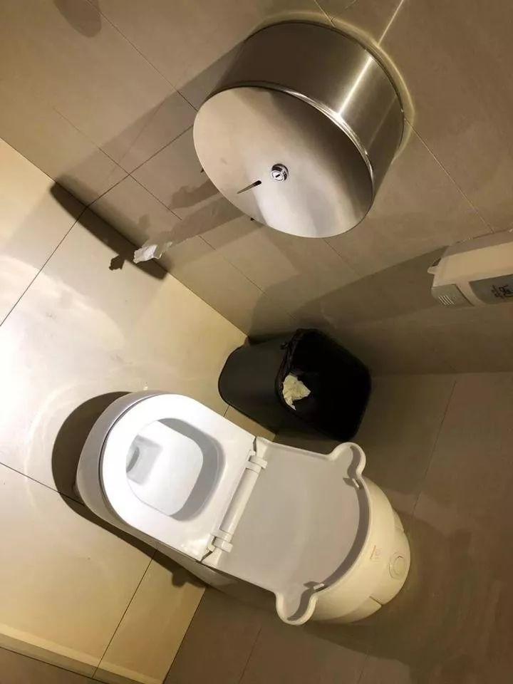 儿童厕位里的厕纸盒,和成人厕位的纸盒是一样的。
