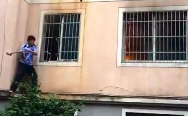 当时李安提出爬到窗户外面去把防盗窗砸开。现场群众开始找梯子,而李安在卢赟的帮助下,拿着锤子爬到了窗户外面的台阶上。