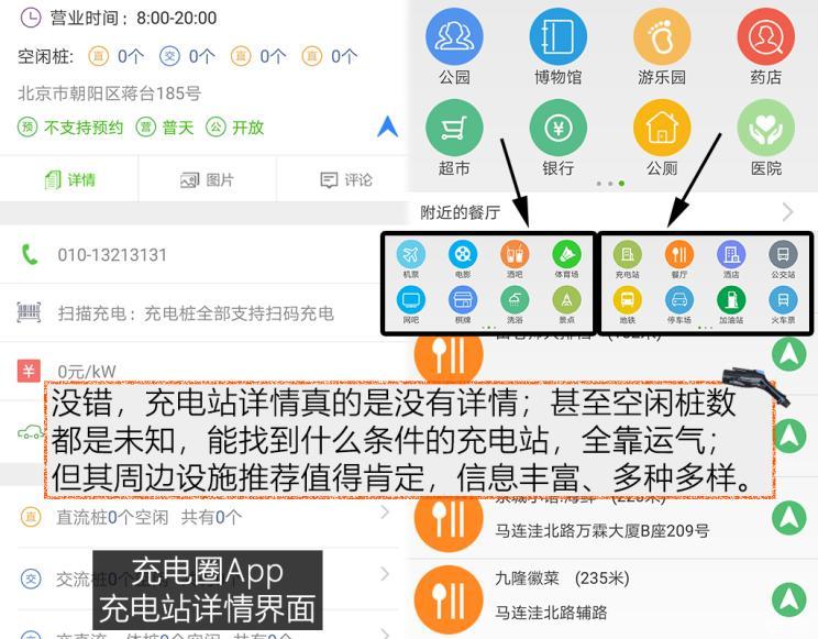 不过该App还是有吸引我的点,那就是周边设施推荐十分丰富;餐厅、酒店、地铁站、电影、超市、公厕等等应有尽有,甚至还有附近的棋牌、洗浴推荐;这会尽可能帮你避免“荒郊野岭”的充电站。但如果连最基本的充电便利性都不能满足,我们当然也就不推荐了。