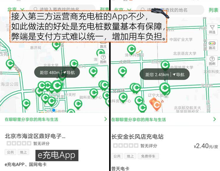 如此一来,在长期使用过程中,下载一两个App根本无法满足需求,甚至需要用户在充电之前临时下载新App,这无疑增加了很大的用车压力;存在该问题的App包括“e充网”、“充电桩”、“电动生活”以及“聚能充”等。