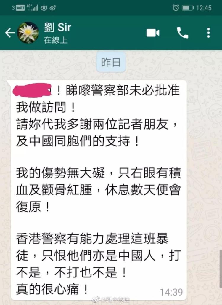 事后,刘Sir在回复友人的一个短信中,他的一句“只恨他们也是中国人,打不是,不打也不是!真的很心痛!”感动了不少内地网友。