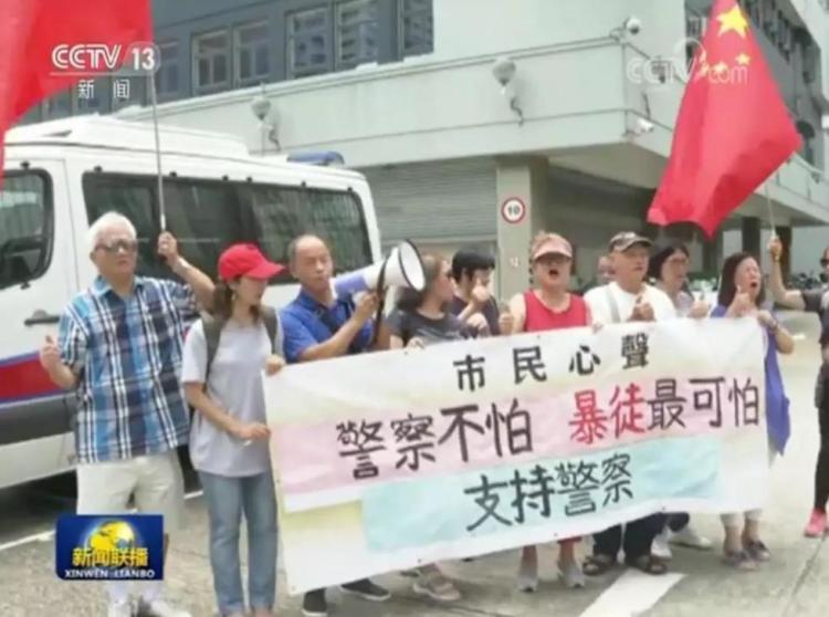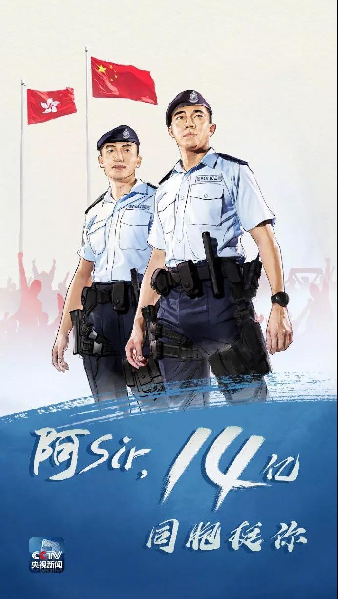 8月7日,《新闻联播》主播海霞在《主播说联播》中为刘Sir点赞:“香港的警察们在一线守护社会的安宁,守护最爱的人,那我们14亿中国人就站在你们身后,守护你们。”