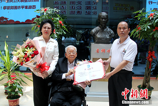 9月7日,印尼中华总商会创会主席、永久荣誉主席、印尼友光集团名誉董事长陈大江一行参访漳平市医院。陈大江祖籍福建龙岩漳平市,出生于1925年,近年来他常带着亲属回归故里寻根。 中新社发 钟欣 摄