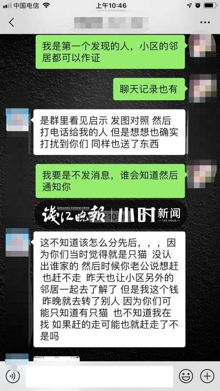 昨天早上,“牛妈”特地在微信上向失主提起这件事。“但对方说,是群里另外一位业主看到照片后通知了她,才得知猫咪所在地点,所以已经把酬金给了别人。”