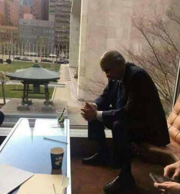 美英法三国对叙利亚发动军事打击后,叙利亚驻联合国代表贾法里怅然独坐,显得无奈又无助。