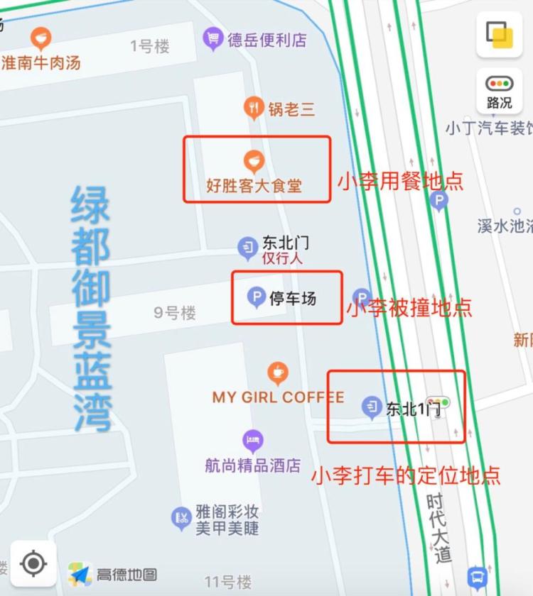 8月14日下午1点,26岁的杭州小伙小李在小区门口的“好胜客大食堂”吃饭。下午1点半 ,小李打了辆网约车,定位上车点是小区的东北1门,距离“好胜客大食堂”不到150米。