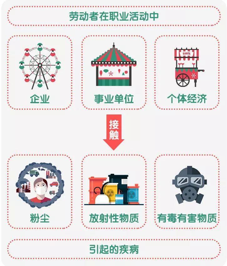 职业病是指企业、事业单位和个体经济组织等用人单位的劳动者在职业活动中,因为接触粉尘、放射性物质和其他有毒、有害物质等因素而引起的疾病。
