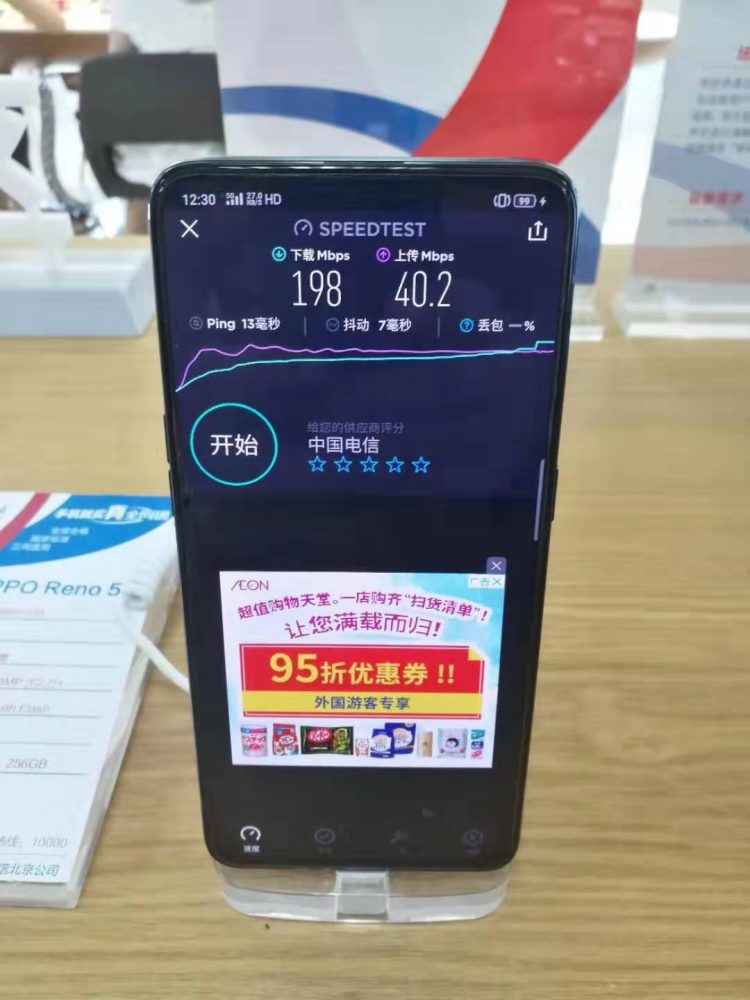 《环球时报》记者在活动现场的5G体验区对5G手机的“极速快感”有了切身体验。其中华为Mate 20X 5G手机在专业测试软件中显示,最快下载速度超过800Mbps,上传速度也达到40Mbps。记者发现,手机应用市场里的大多数应用软件几乎都可以在转眼之间下载完毕并开始安装。现场工作人员告诉记者,由于5G网络现在还没有建设完成,不同地点的5G速度可能存在差异,但整体而言,5G手机的下载速度明显高于4G手机。