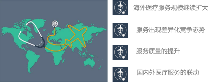 目前在全球海外医疗行业里对中国的看法,仍然是医疗服务的买家。但是,中国有可能逐渐从买方向,向买方+卖方的行业转变。因为中国有着非常丰富的旅游资源,同时,有大量的医疗资源和医疗机构,而且顶尖的医疗机构整体的水平已经进入世界先进水平了。如果把国内医疗服务做好,将来有可能像其他一些国家,比如泰国、马来西亚、新加坡、日本等等这些国家形成卖方的旅游式医疗的巨大的提供方,是巨大的发展机遇。