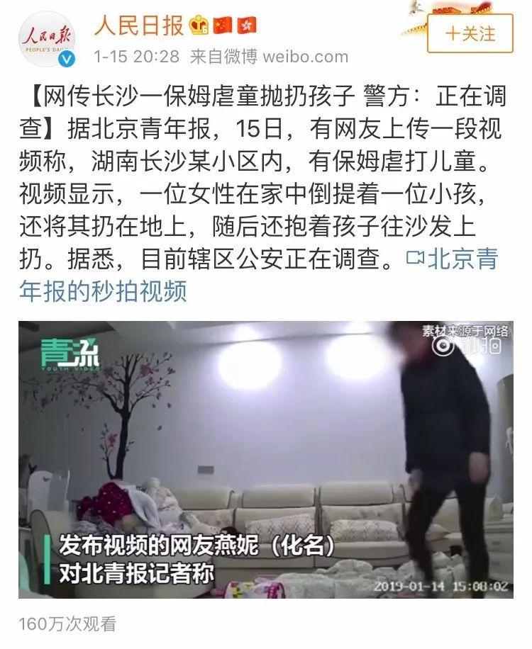 今年一月份在湖南长沙,一名保姆被发现在家中虐待孩子,不仅将孩子倒着提起来丢在地上,后来还将孩子丢到沙发上不管不顾。