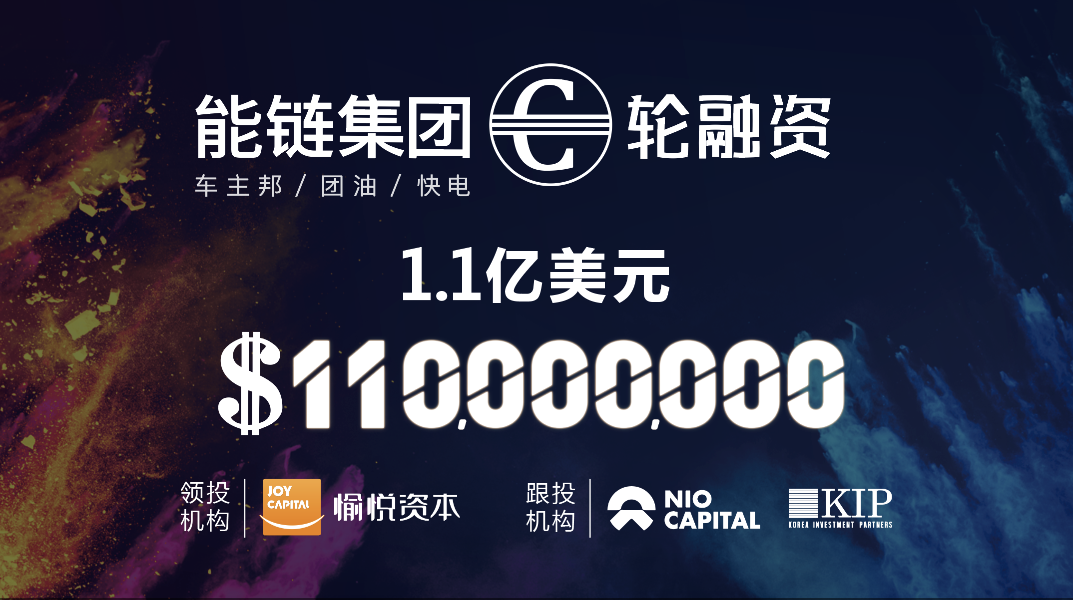 11月26日,数字化出行能源开放平台能链集团(车主邦/团油/快电)宣布完成C轮融资,融资金额1.1亿美元,愉悦资本领投,蔚来资本、KIP中国跟投,这是能链集团在1年内的第3次融资。