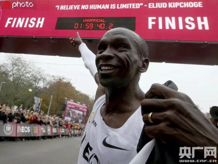 当地时间10月12日,基普乔格以1小时59分40秒的成绩跑完了42.195公里的马拉松,成为人类马拉松“破2”首人。