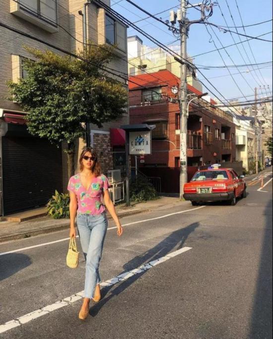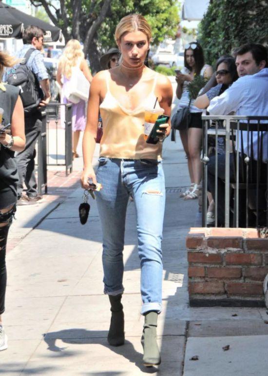 但我对这种穿法的记忆点,是女生其实可以不穿bra!海莉就爱这么穿。