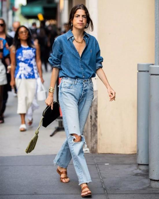 因为时尚博主还这么穿啊~Leandra Medine在纽约时装周上把小白鞋换成凉鞋,更波西米亚~
