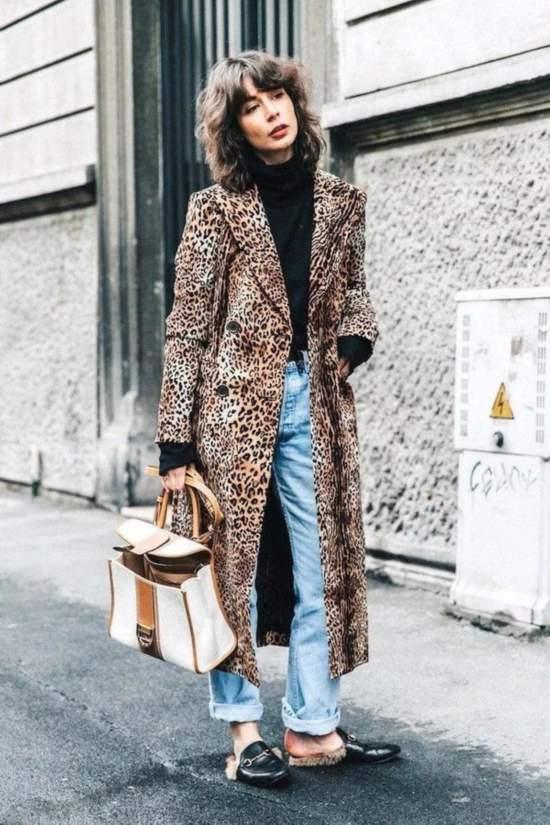 秋冬时装周街拍里,豹纹也是热门。跟深色内搭最配,不过也最考验气场,一不小心就容易俗气。