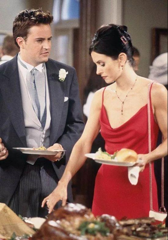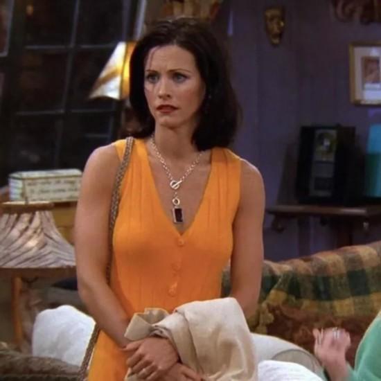 Monica穿红色吊带很美,Ross婚礼上那件就把钱德勒迷得不要不要。不挤沟、胸型坦坦荡荡、毫不在乎的样子,当年对我冲击有点大,现在倒成了我们小胸女孩的骄傲了。