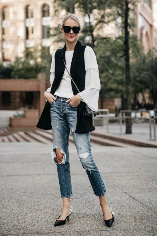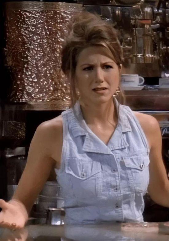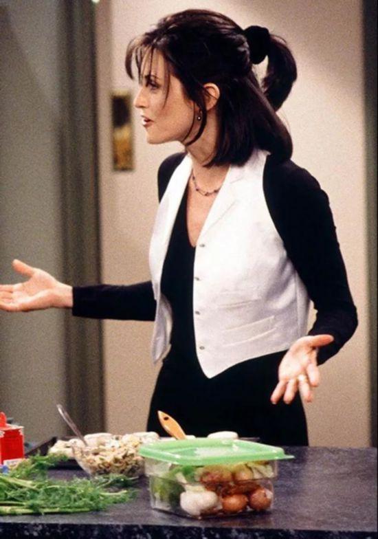 马甲是《老友记》女孩都爱的叠穿单品,现在看就很复古了。Monica和Rachel偏爱修身款,突出身材优势。